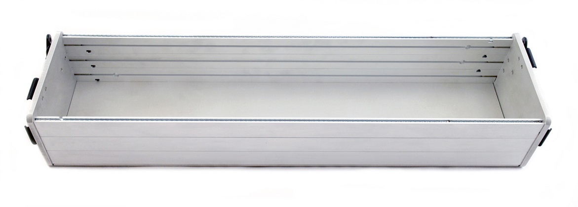 Each Modular Row is a stand-alone unit that can connect with other Modular Rows to form a small or large case system. Rows connect directly to each other with built-in latches (no tools required!) Angled connectors allow for 30 and 45 degree angles. Legs screw onto any Row to provide support and ergonomic angles.