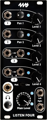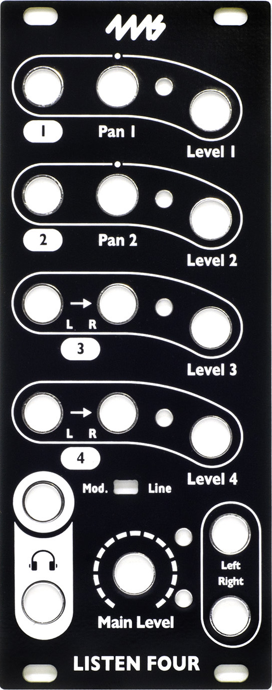 DIY replacement faceplate for the Listen 4. Black background with white artwork.