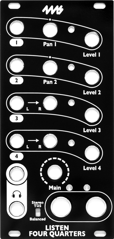 DIY replacement faceplate for the Listen 4Q. Black background with white artwork.