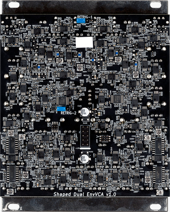 The Shaped Dual EnvVCA is a two-channel analog envelope generator with waveshapers and a stereo linear VCA. Unlike conventional analog envelope modules, the waveform of each envelope can be controlled with a slider or CV without changing the envelope timing. With a wide time range from an hour to 2.5kHz, and a plethora of CV inputs and attenuverters, it can be used as an LFO, audio-rate oscillator, slew limiter, waveshaper, ASR/ADSR/complex EG, independent audio/CV VCA, envelope follower, sidechain processor, and general utility module. Each channel has dedicated linear outputs plus attenuverters and offset controls for the variable waveshape outputs, making it an ideal modulation source and stereo VCA.
