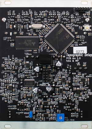 Have you ever gotten tired of the monotonous repetitions that your standard delay pedal/module produced? Have you ever wished for a more complex rhythmic structure than just decaying repetition? If yes, you have come to the right place: the Tapographic Delay is an advanced effect that lets you handle repetition in a completely novel way. It is to a traditional delay what a full rhythmic sequencer (with pattern recall, velocity control, tactile input) is to a simple clock. With the TD, you interactively define the rhythm that the repetitions will follow: a velocity-sensitive sensor allows you to record, edit, modify, and sequence your own arrangements of delays. In a sense, the TD is the converse of the classic Frippertronics sound-on-sound setup popularized by Robert Fripp in the 70's: you don't play the guitar, you play the tape loop!