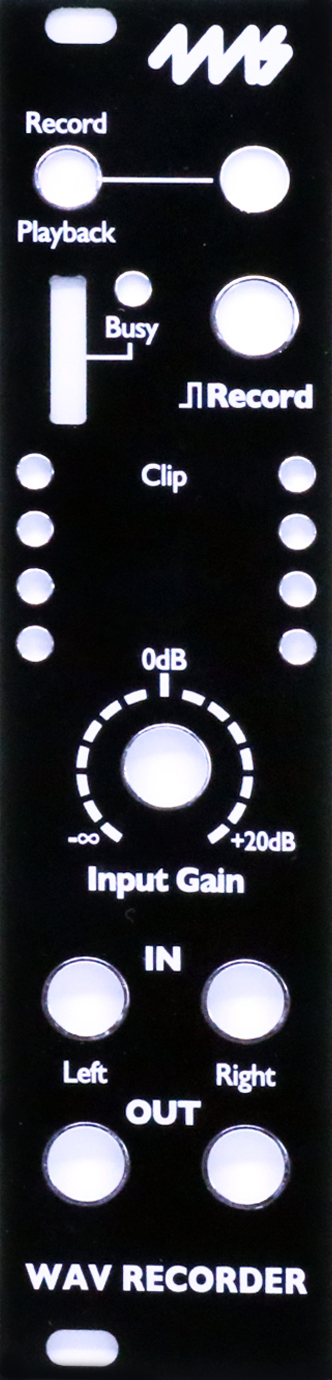 DIY replacement faceplate for the WAV Recorder. Black background with white artwork.