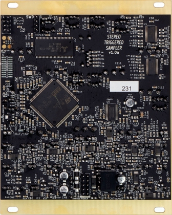 The Stereo Triggered Sampler is a high fidelity, two-channel stereo sample recorder and playback module. The STS can record high quality stereo files, while simultaneously playing two different stereo files. A maximum of 600 samples can be loaded from the removable/swappable microSD card, in a variety of formats up to 96kHz/32-bit/stereo WAV. All sample parameters (1V/oct pitch, sample file selection, length, and start position) are CV controllable.