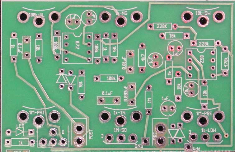 - all components (resistors, capacitors, LEDs, ICs, transistors, sockets, jacks, pots, knob covers, switches, clips, etc..)